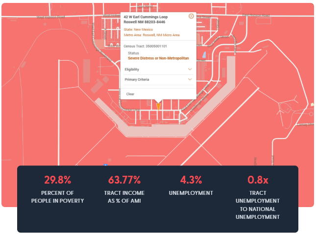Located in a census tract with a poverty rate of 29.8% and a median family income just 63.77% of the area median income (AMI), the project represents a significant private investment in one of southeastern New Mexico’s most distressed regions. The site sits along Roswell’s public transit system with a dedicated bus stop at the property, ensuring accessibility for workers and residents alike.